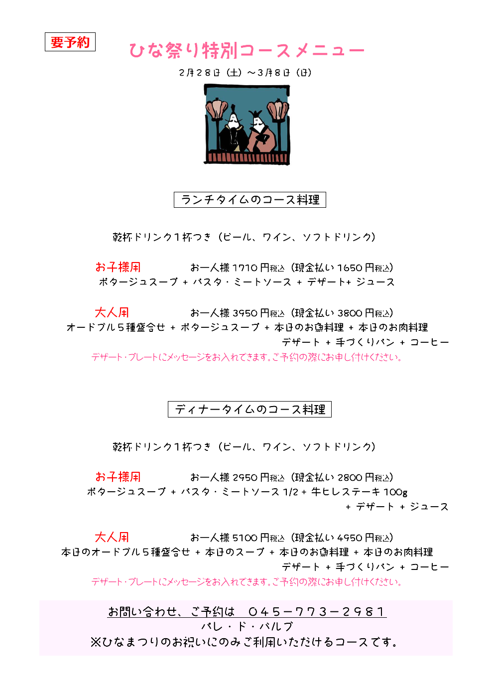 ひなまつり、端午の節句にご家族でフレンチはいかがでしょう。